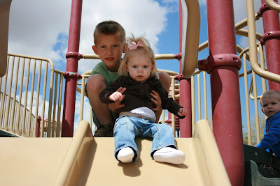 The last day of spring break, we are soooo sad! Dustin took the day off to spend it with us. We got up hopped on our bikes and rode to the park, about a 6 mile round trip! I took the two little ones in the trailer on my bike and the two older ones rode their own bikes. They did so great, not one ounce of complaining, Kenley got a little tired towards the end, about the last 1/4 mile. But the most she said was I need to rest. What a little trooper!